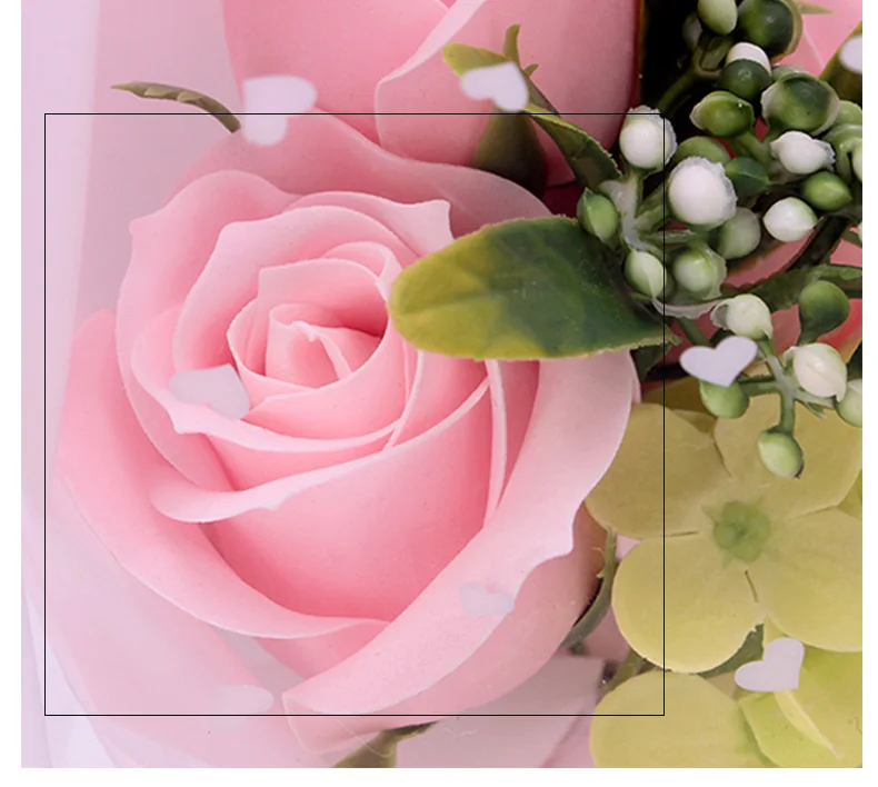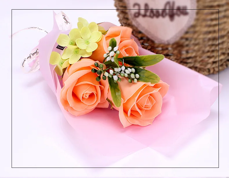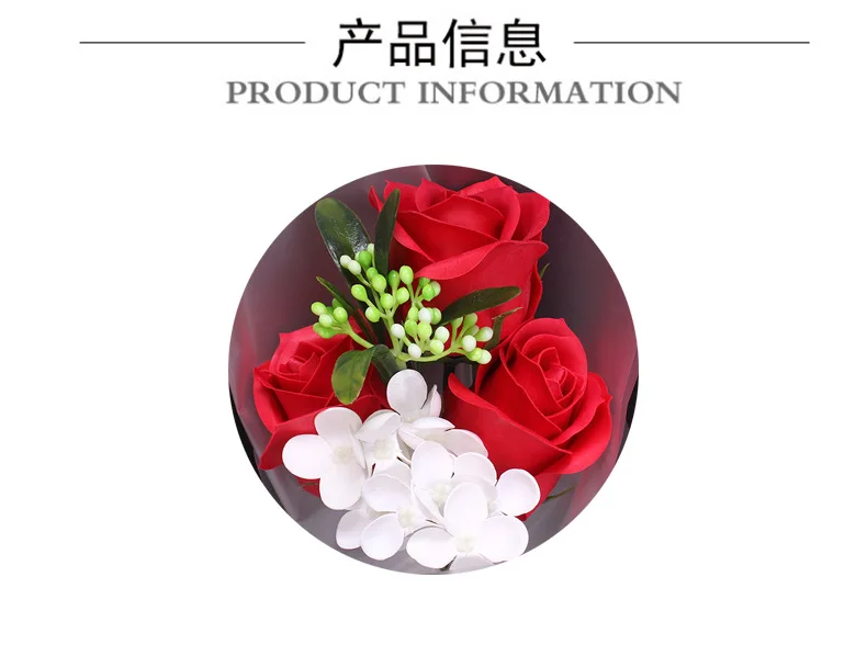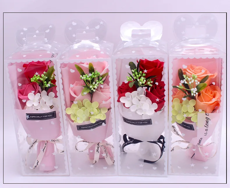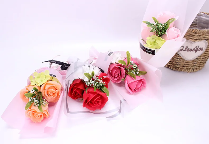 3pcs Head Rose Soap Flower Eternal Rose Valentines Day Present Gifts Creative Birthday Gift Handmade Soap Rose Bouquet with Box